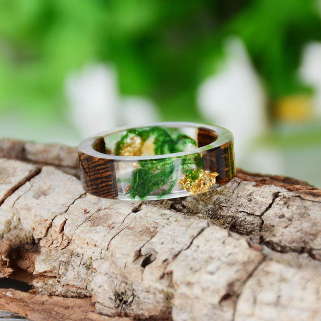 Für die Herstellung unseres Earth-Rings verwenden wir hauptsächlich Harz & lediglich ein kleines Stück Verschleißholz, welches von Tischlereien nicht mehr benötigt wird. Kein Baum kommt durch unseren Schmuck zu Schaden. 🌲