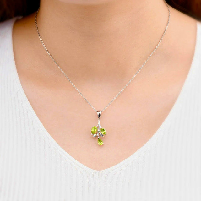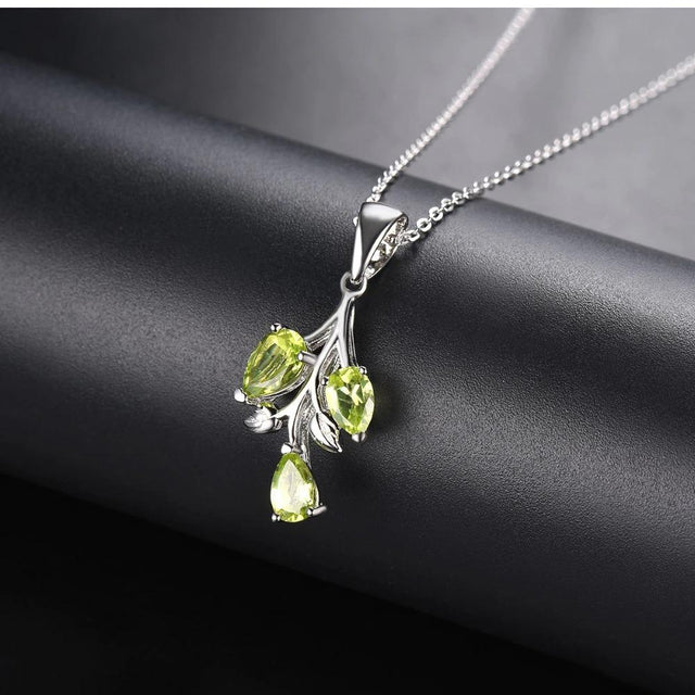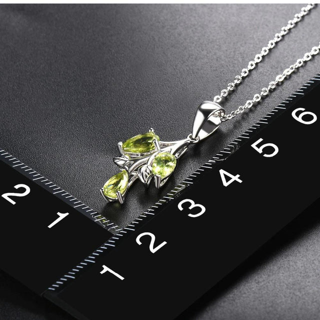 Echtes Sterling-Silber und 3 grün-glitzernde Peridot-Edelsteine machen die Blätter-Halskette zu deinem schönsten täglichen Begleiter.